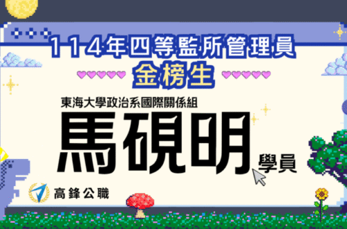 【114年度】警專44期甲組女生 葉家安學員上榜心得 06/17/2025 / 當時為何會選擇高見:當初父母經過上網評比各家公職補習班後,選定台東高見補習班-考前衝刺班,來做為自己準備考取警專上課的首選,藉由台東高見補習班的課程安排規劃,來輔助自己在學習過程中成長,也讓這個選擇能創造出更多的價值與火花。 各科目的準備方法:一開始剛入班時,很擔心自已會跟不上授課進度,心態沒有很積極~後來經由班導思綺老師/班主任語妮老師,開導建立起來學習信心!在資源不多的台東,透過台東高見補習班的每週專業課程設計,有系統性、有架構的學習各科科目,在衝刺班上課的同時了解自己的程度,釐清方向彌補了各科目不熟悉不足之處,回家後或假日皆可反覆觀看授課回放影片課後複習,配合高見各科參考書重點整理及考古題,加強記憶及解題邏輯,藉此來加深我對弱科的熟悉程度,綜合以上方法都是我準備任何科目的原則。持之以恆努力讀書了三個月,透過高見補習班的資源,在這樣一個優良的學習環境,經過台東高見三次模考的訓練,有目標的向前邁進,我真的模考一次比一次更進步神速,自信心也增加許多,連自己都感到上岸的曙光就在前方!真的感謝台東高見,這三個月艱辛的準備過程,讓我終於能夠考上金榜題名。 您最想感謝的老師:康語妮主任很盡責且積極地關心我們是否在課程中有不懂的地方,儘管身處在偏鄉台東,也會盡力幫我們爭取最好的資源,此外也在課外給我們許多鼓勵,例如像是課餘時間的小零食/遇到加課時也會請我們喝飲料打氣鼓勵~注重考生身心健康細節,令人感到非常溫暖。 想對客服人員說的話:發問題快速且認真回答,萬分感激。 給學弟妹或同仁的建議:真的不要因為自己高二/高三沒有認真讀選修而懼怕,高見都會一個一個單元詳細講解!要認真過才不會留遺憾 作者畢業於台東女中樂意為大家分享考試心得及經驗。📌 台東高見 📌有任何需求請聯繫小編👉LINE : @491rnudh👉電話:089-343712👉地址:台東縣台東市漢陽北路89號 相關